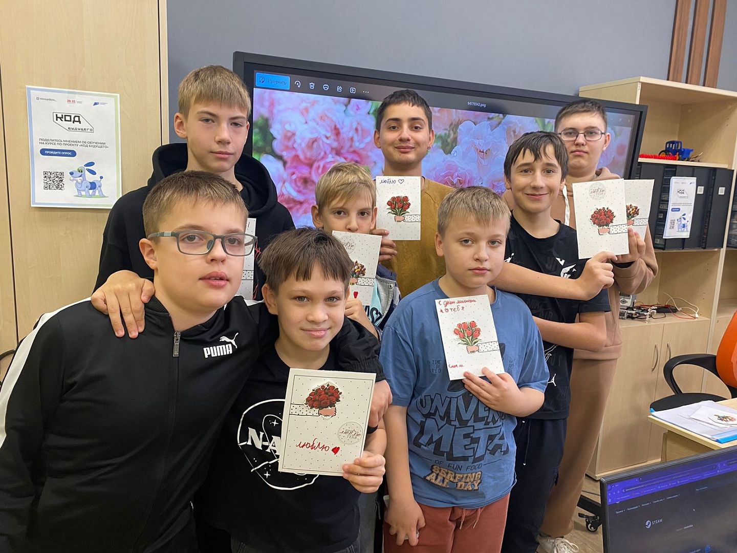 Графические дизайнеры использовали профессиональные навыки: ребята презентовали стильное поздравление, создав совместную презентацию в Figma, они написали трогательные и искренние пожелания, а также прикрепили фотографии своих мам и семейных моментов. Это позволило детям проявить свои чувства и благодарность через цифровое творчество.