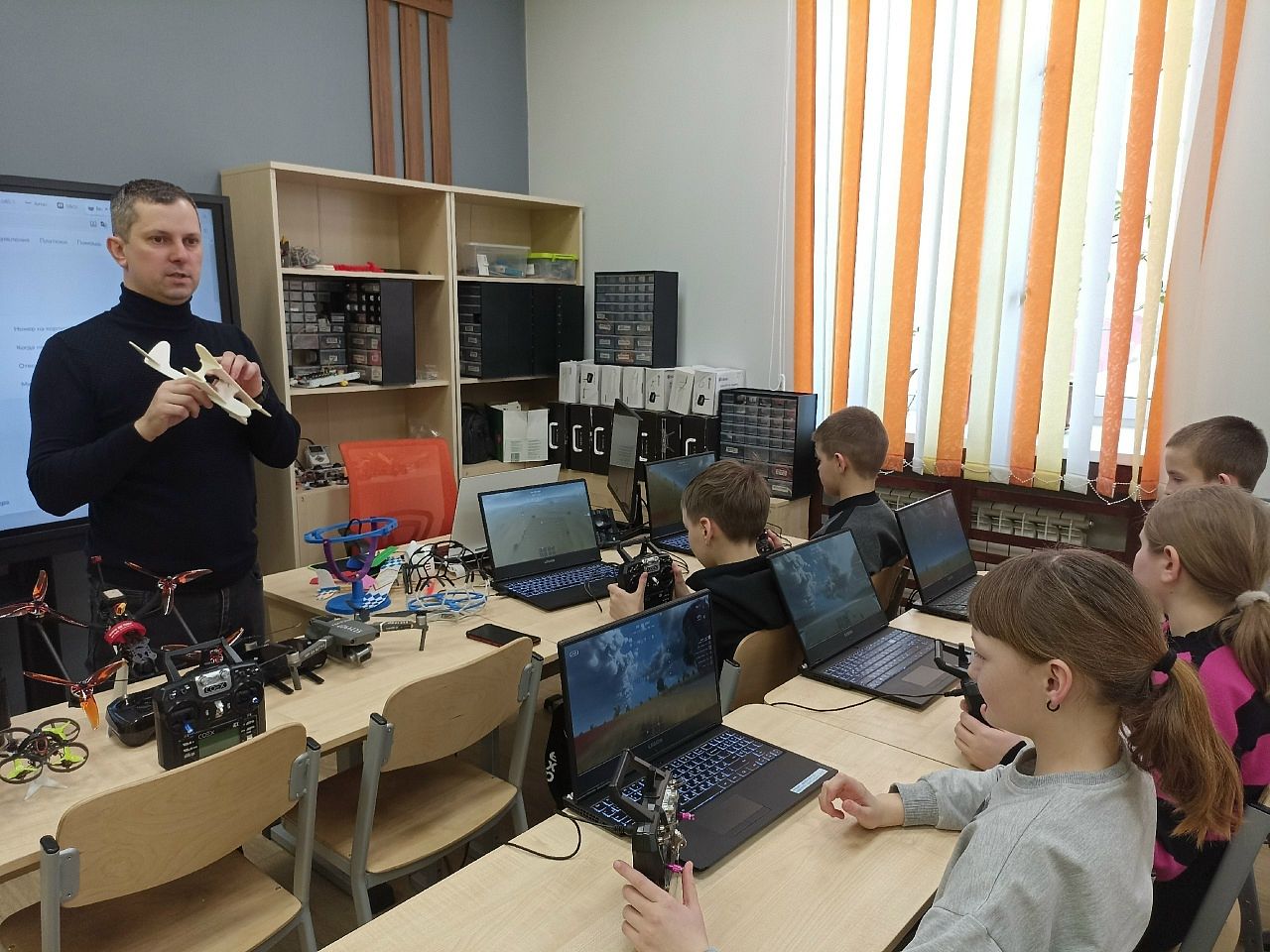 Второй блок был посвящен передовым технологиям: на интенсиве «Управление и конструирование беспилотных авиационных систем» школьники изучили конструктивные особенности дронов, освоили базовые принципы аэродинамики и радиоуправления, а затем испытали себя в роли пилотов — сначала в виртуальном симуляторе, а затем в режиме FPV, управляя квадрокоптером через камеру в реальном времени.