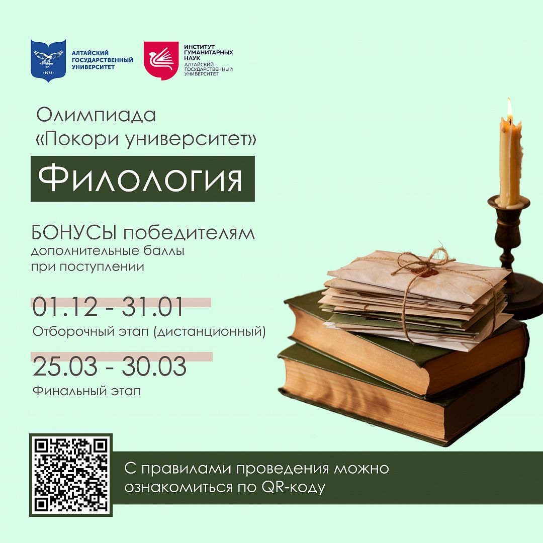 Институт гуманитарных наук Алтайского государственного университета объявляет об отборочном туре олимпиады по филологии «Покори университет».